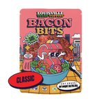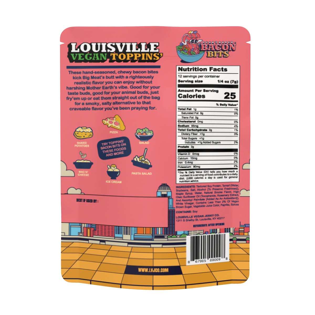 As a vegan i absolutely love the vegan bacon bits. I put them on salads, pizza, and they are great on a baked potato with other vegan toppings. I buy them in packages of 10 directly from the Louisville jerlky company.
