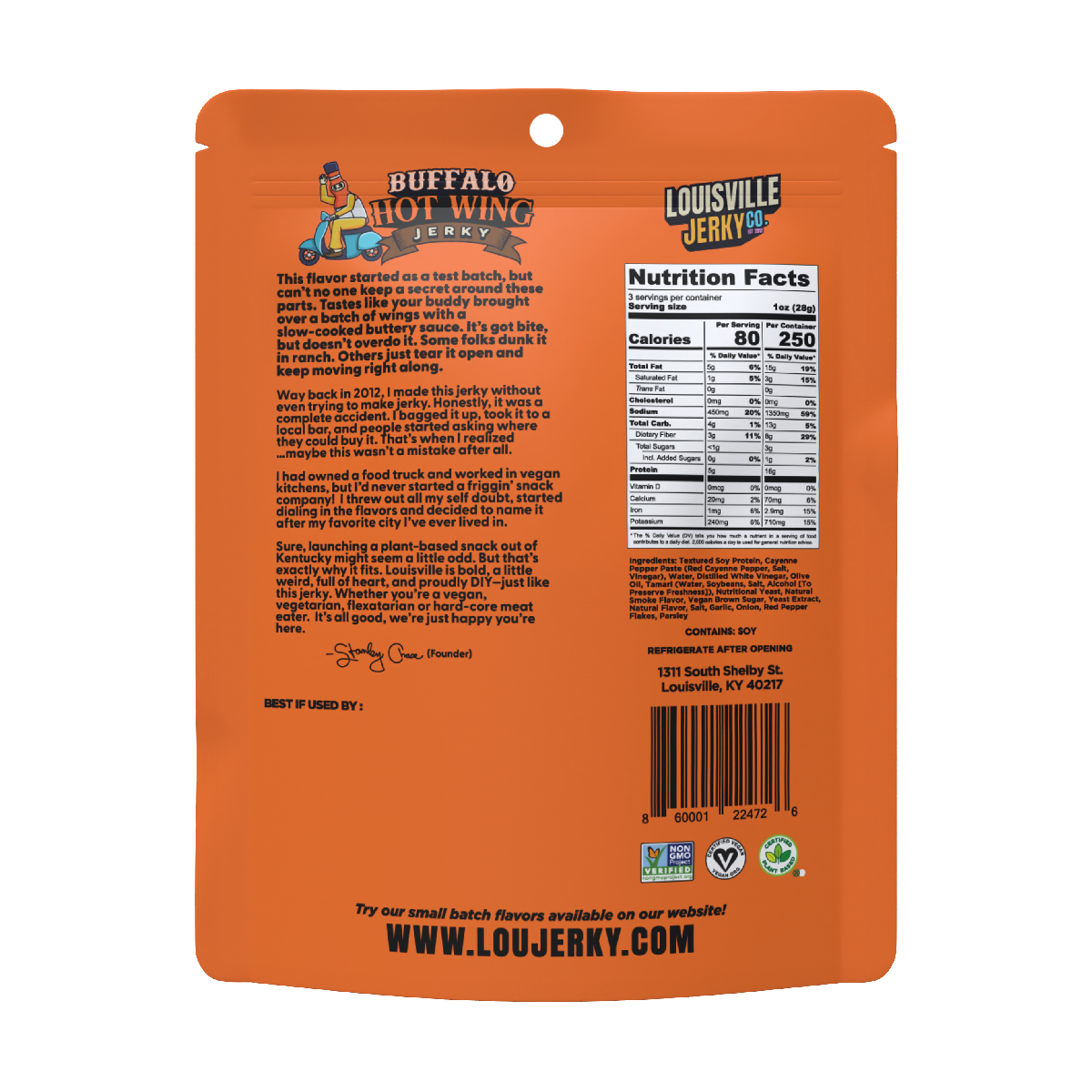 I was hooked on Beyond Meat’s Hot & Spicy Jerky and was heartbroken when they discontinued production. I had no idea Louisville existed but wow was I overjoyed to come across them and have been addicted to their Buffalo Hot Wing flavor!!! It’s flavor is much more intense than my previous favorite however the texture isn’t as meaty as BMJ. Nonetheless I found my new addiction and their rewards program makes their pricepoint comparable and often times better than BMJ!