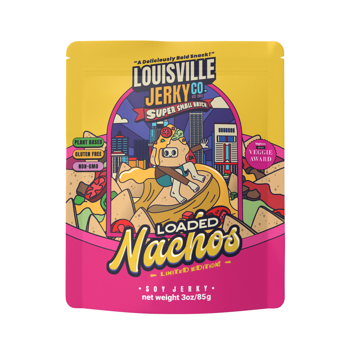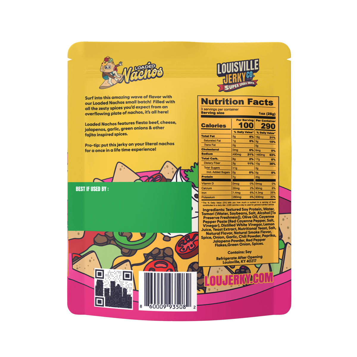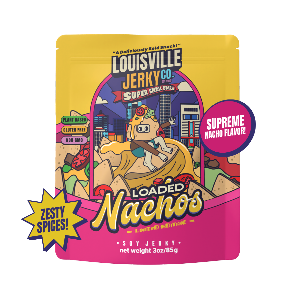 Surf into this zesty wave of flavor with our brand new small batch, Loaded Nachos!  Filled with all the spices you know and love, this jerky has it all.  Beefy nachos smothered in delicious cheese, jalapeños, and loads of fajita inspired flavors. Pro-tip: put some chips & cheese in the microwave and throw some of this delicious jerky on top for a truly amazing experience!