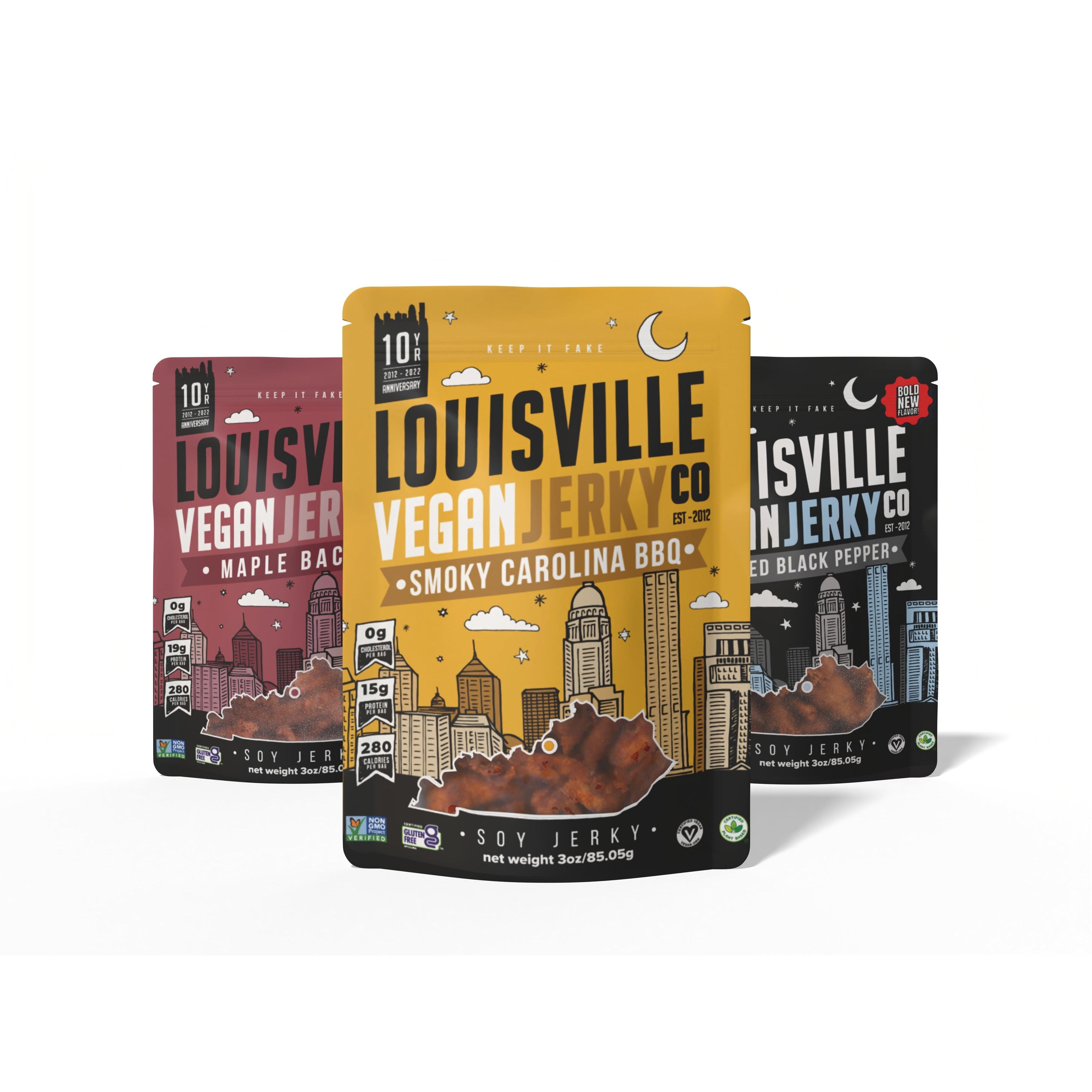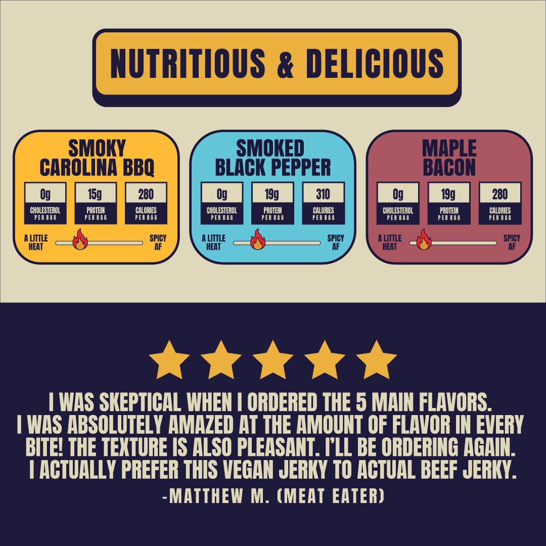 3 Bag Variety Pack | Best-Selling Flavors | Includes Maple Bacon, Smoked Black Pepper, & Smoky Carolina BBQ | Gluten-Free, Non-GMO, Plant-Based Jerky