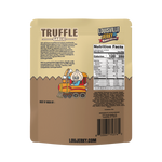 Ingredients: Textured Soy Protein, Tamari (Water, Soybeans, Salt, Alcohol [To Preserve Freshness]), Olive Oil, Water, Vegan sugar, Distilled White Vinegar, Truffle Oil (Olive Oil, Canola Oil, Artificial and Natural Flavor), Natural Smoke Flavor, Truffle Dust (Carob Bean, Salt, Mushrooms [Including Champignon, Porcini], Natural and Artificial Flavors, Rice Concentrate, Cabbage Extract Powder Maltodextrin, Sugar, Cabbage Extract, Corn Oil], Garlic, Onion, Black Pepper), Garlic, Spice, Onion